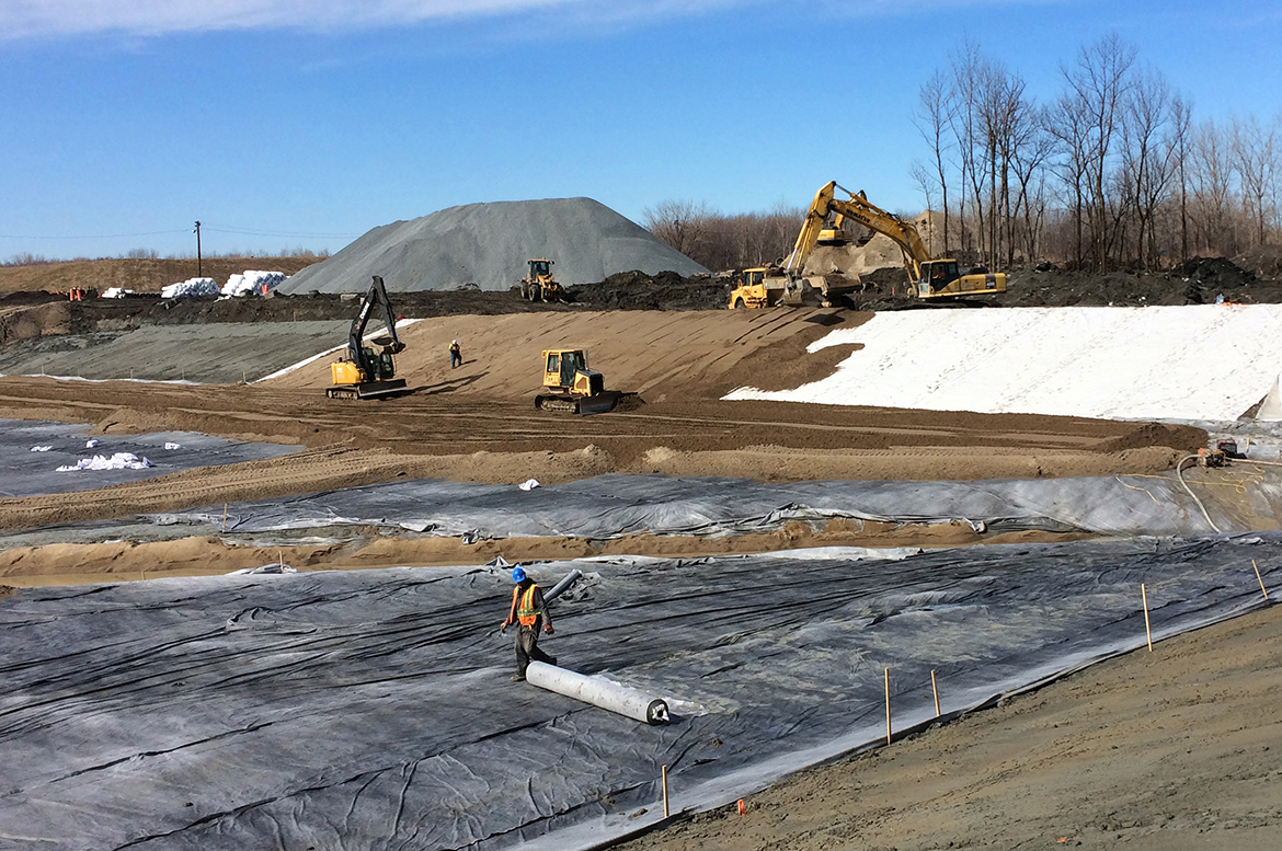 Groupe Alphard was involved in many elements of this project, including engineering design of the new confinement cell, works surveillance and geosynthetic materials quality assurance (QCA). The surveillance and QCA programs included the validation of natural materials used during construction and the monitoring of construction activities in conformity with engineering design specifications. A leak location survey was also provided, using both the water puddle and dipole methods to validate over 30,000 m 2 of geomembrane liner.