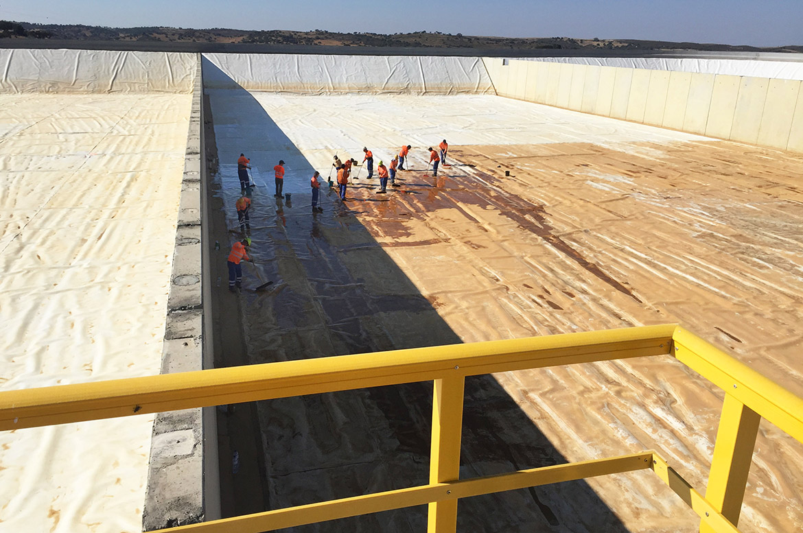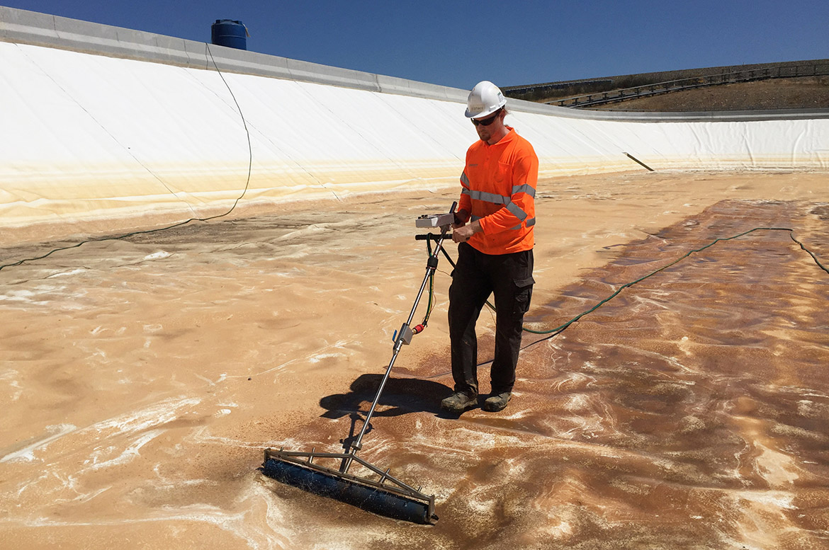 Site inspection and water puddle electrical leak location survey performed over 12,400 m 2 of geomembrane materials, including floor and side-walls, during summer 2018.