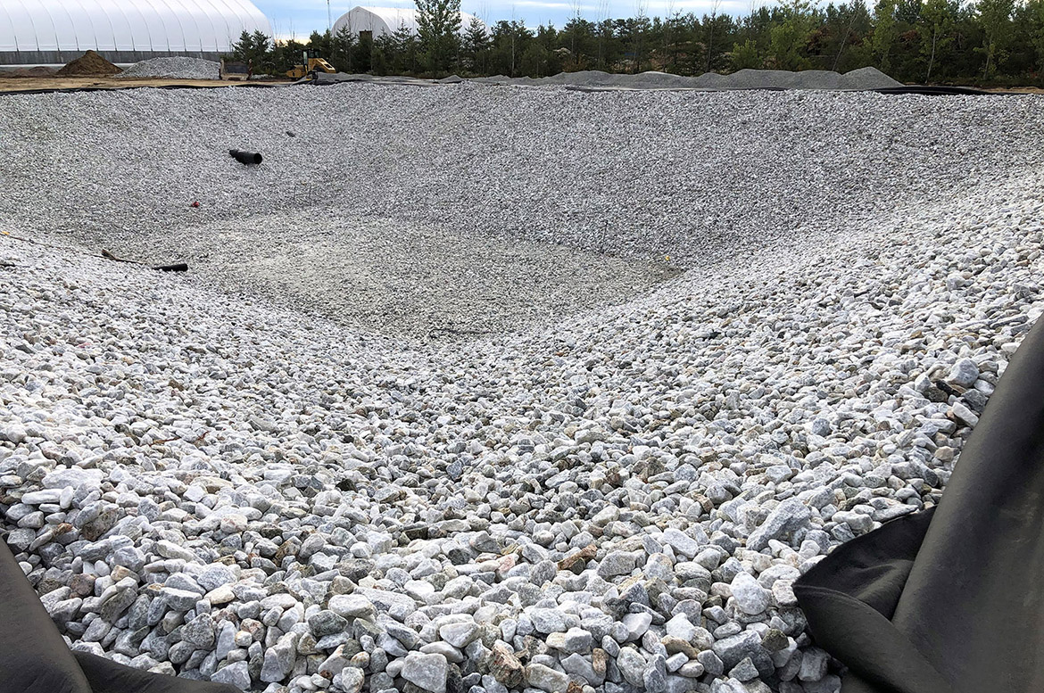 Groupe Alphard's services were required for a composting project in Dolbeau, Lac-St-Jean, during the summer of 2020. A concrete composting platform was installed and an accumulation basin as well. The waterproofing of this basin’s geomembrane was validated using the dipole method in its entirety after the installation of the protection layer and drainage material, i.e., approximately 2,200 m².