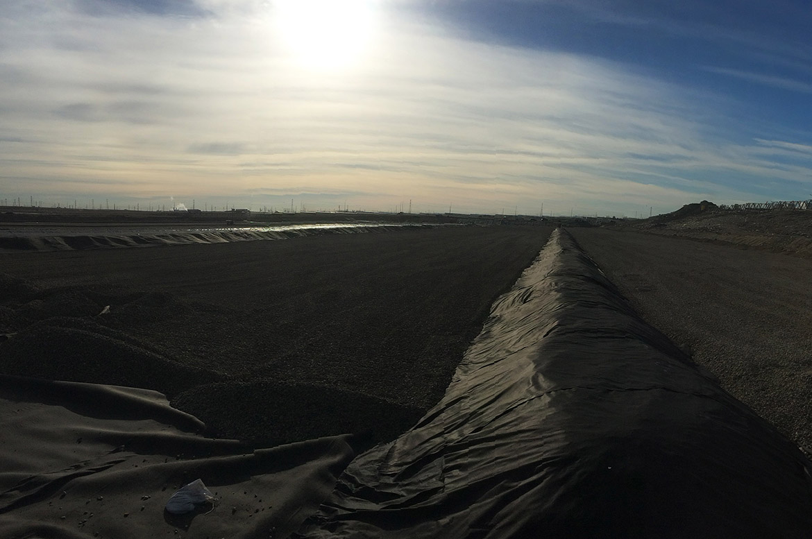 Dipole method electrical leak location survey over approximately 30,000 m 2 . The survey was performed on the site’s covering gravel layer, in order to detect leaks produced during the installation of the covering material.