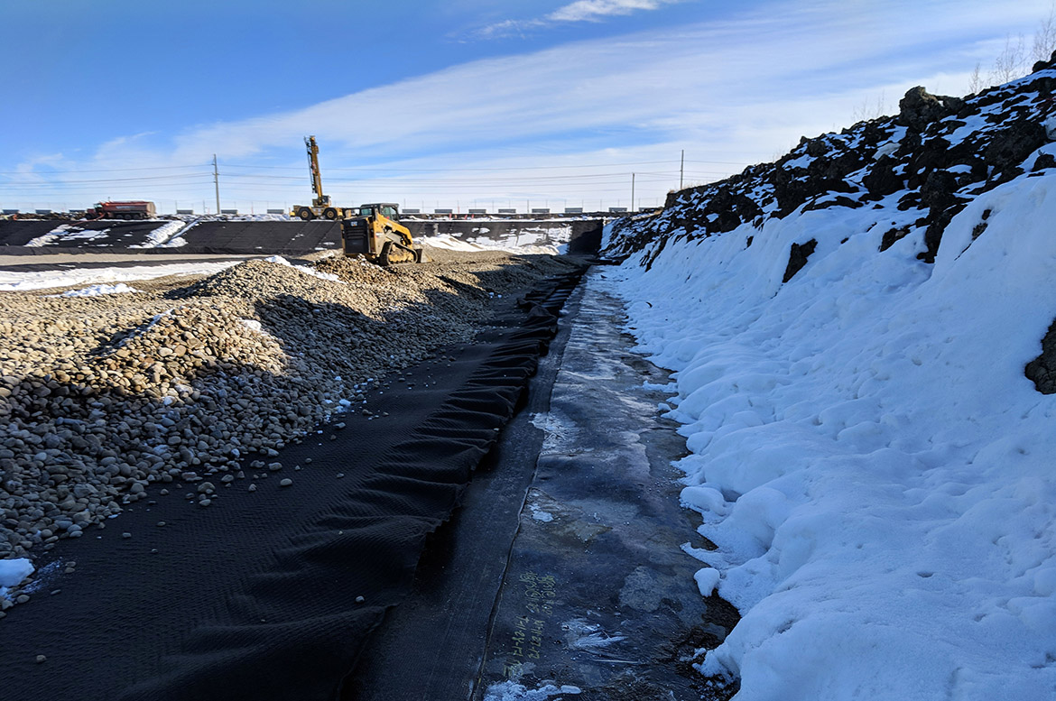 Dipole method electrical leak location survey over approximately 30,000 m 2 . The sruvey was performed on the site’s covering gravel layer, in order to detect leaks produced during the installation of the covering material.